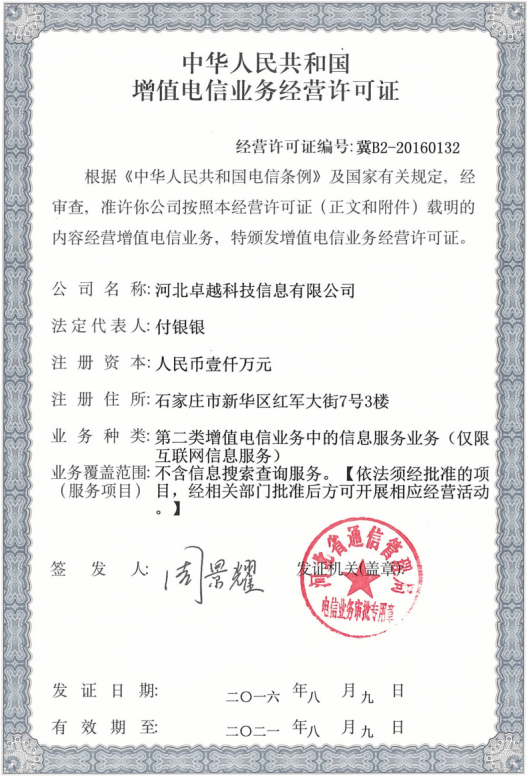 荣获增值电信业务经营许可证